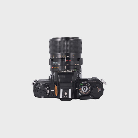 The Minolta X-700 is one of the easiest 35mm SLRs to get started with, especially if you're new to film photography. Its standout feature is its fully automatic Program mode, which means the camera selects the shutter speed and aperture for you—perfect for quick shooting and learning as you go. It also offers Aperture Priority mode for more creative control when you're ready, plus full manual for those who want to experiment. The 35-70mm f3.5 zoom lens gives you flexibility to shoot everything from street scenes to portraits, all in one compact setup. The X-700 is a popular alternative to the Canon AE-1 Program, with a lighter body and simpler controls.